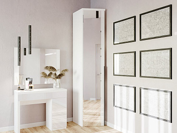 Удобная уборка и стильное решение. Зеркальный фасад абсолютно безопасен при уборке благодаря защитной фаске по краям. При этом он не только зрительно увеличивает комнату, но и избавляет от необходимости занимать место отдельно стоящим зеркалом.