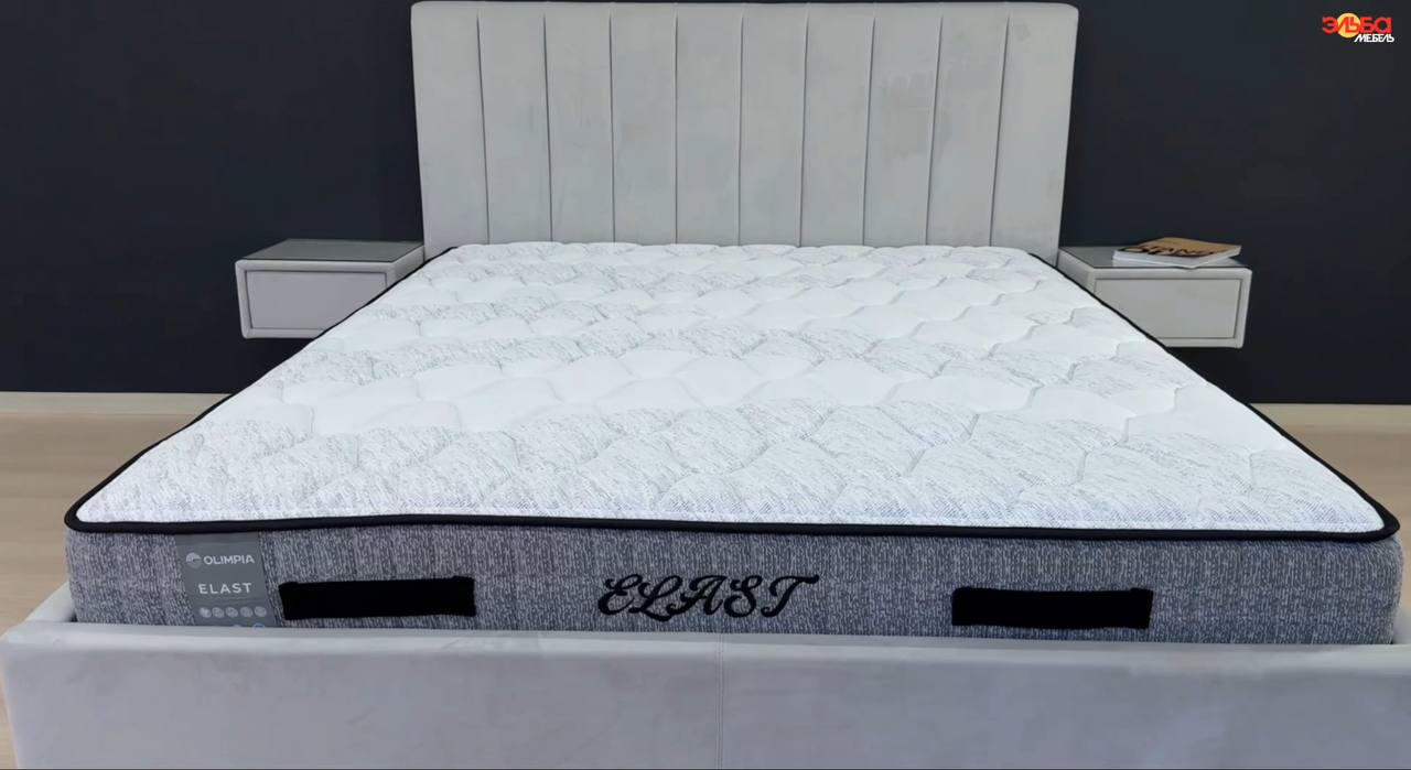 ELAST. Жесткость: выше среднего. Высота: 22 см. Беспружинная технология из многослойных пен. Эффект: невесомость и глубочайшее восстановление во сне.