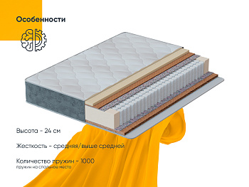 Основополагающий элемент – это независимый блок MultiPocket с плотностью 1000 пружин на спальное место.