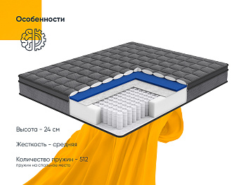 Pocket Spring Standart – качественный и надежный блок независимых пружин. Благодаря ему матрас на протяжении всего срока использования сохраняет форму и дарит крепкий сон отдыхающему человеку. Пружины идеально подстраиваются под анатомические изгибы тела, бесшумны и обеспечивают превосходную изоляцию движения. Пружинный блок армирован коробом из плотной ортопены. Она усиливает жесткость по краю матраса.