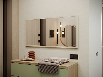 Прямоугольное зеркало 120х60 см становится основой для создания гармоничного пространства. Его чёткие линии и пропорциональная форма привносят в интерьер ощущение порядка и визуального равновесия. Зеркало словно растворяет границы комнаты, наполняя её светом и воздухом.